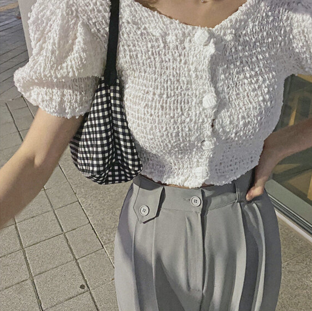-クロップ丈のパフカーディガン