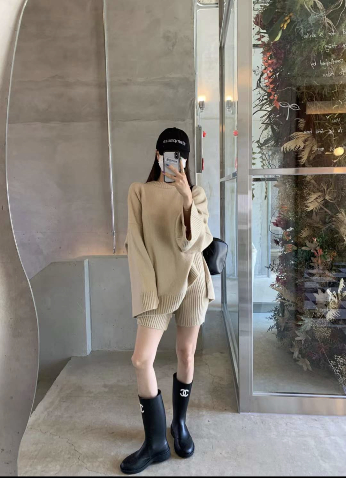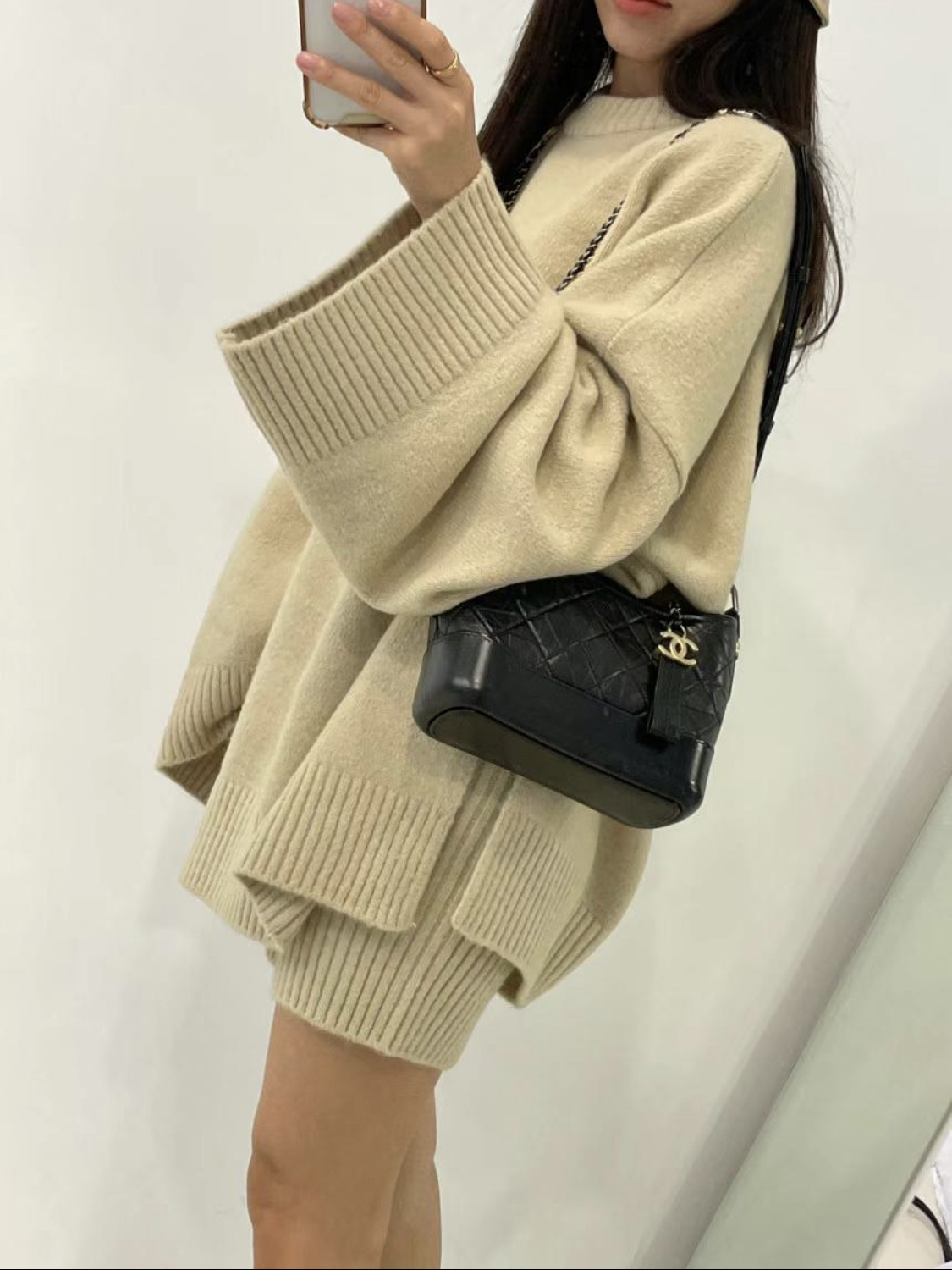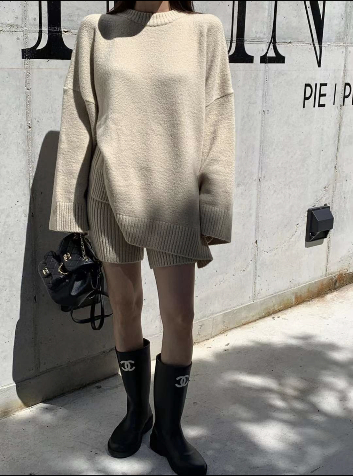 -オーバーサイズのニットとニットハーフパンのセットアップ